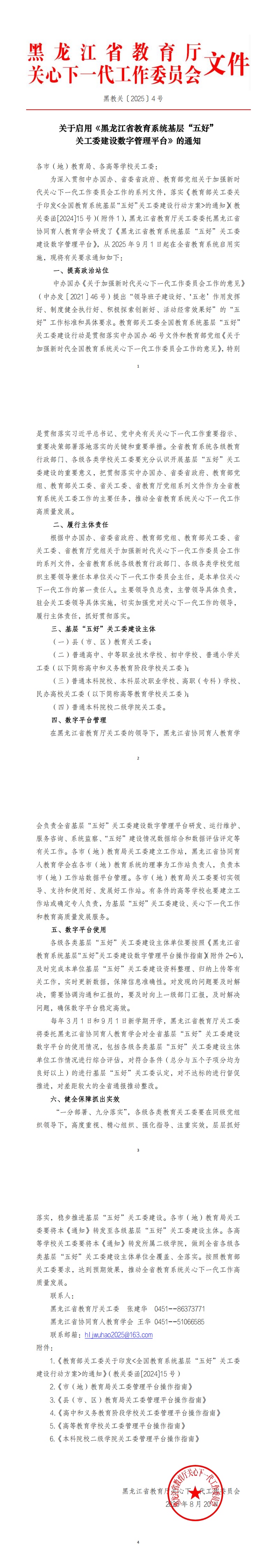 关于启用《黑龙江省教育系统基层“五好”关工委建设数字管理平台》的通知