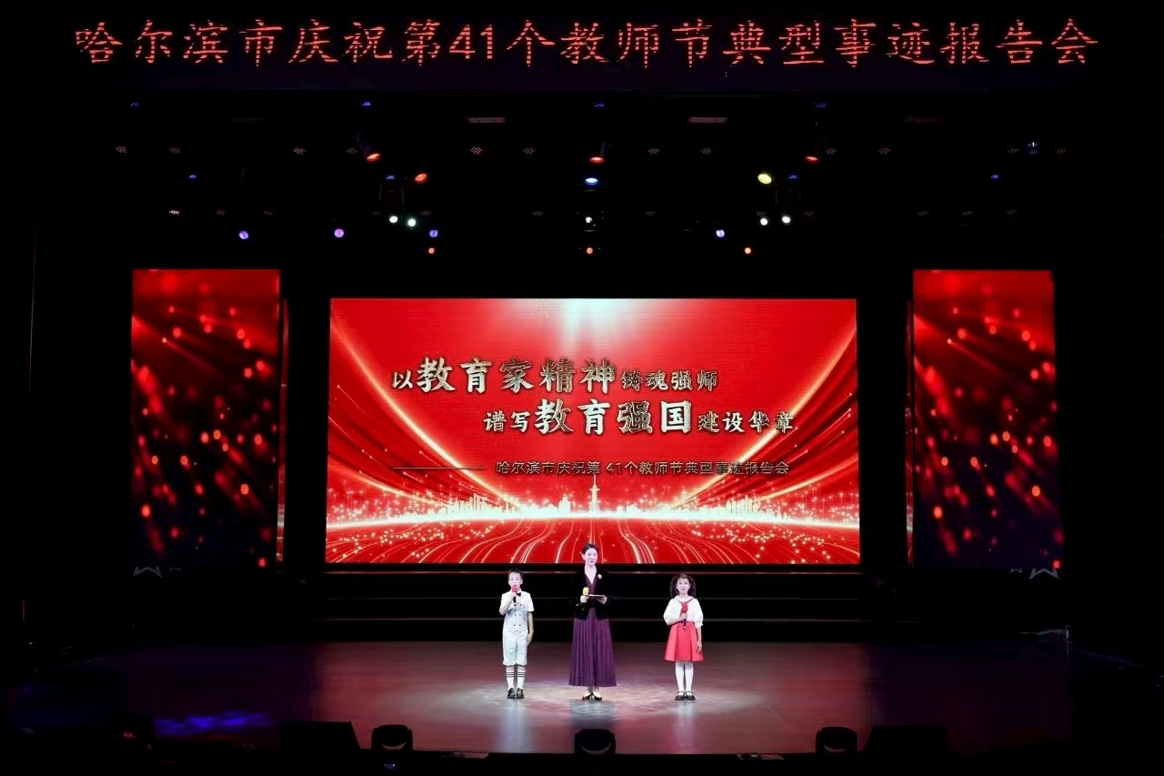 为弘扬尊师重教传统,强化榜样引领感召,9月9日,哈尔滨市庆祝第41个教师节典型事迹报告会在市少年宫艺术中心举行。
