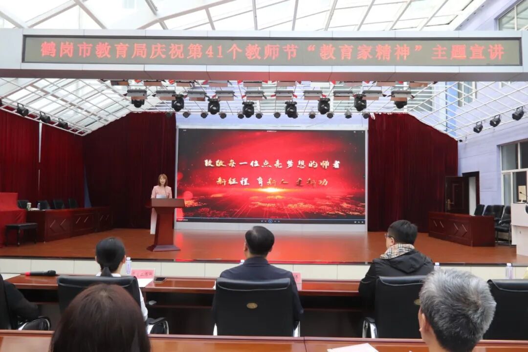 9月9日,鹤岗市教育局举行庆祝第41个教师节“讲述育人故事 砥砺师德初心”——“教育家精神”主题宣讲活动。全市中小学校和幼儿园德育领导、优秀班主任和教师代表在主会场参会,各县(区)及局直属各学校组织教师通过线上方式同步参会。