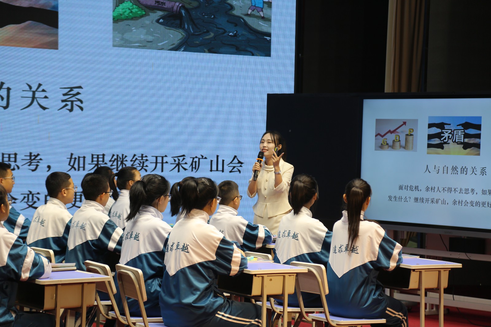 在教学论坛环节,出课教师与教研员以“思政一体化视域下问题设计的梯度建构与思维进阶”为主题,探讨了如何在“两山”理念教学中设计梯度化、结构化的问题链。
