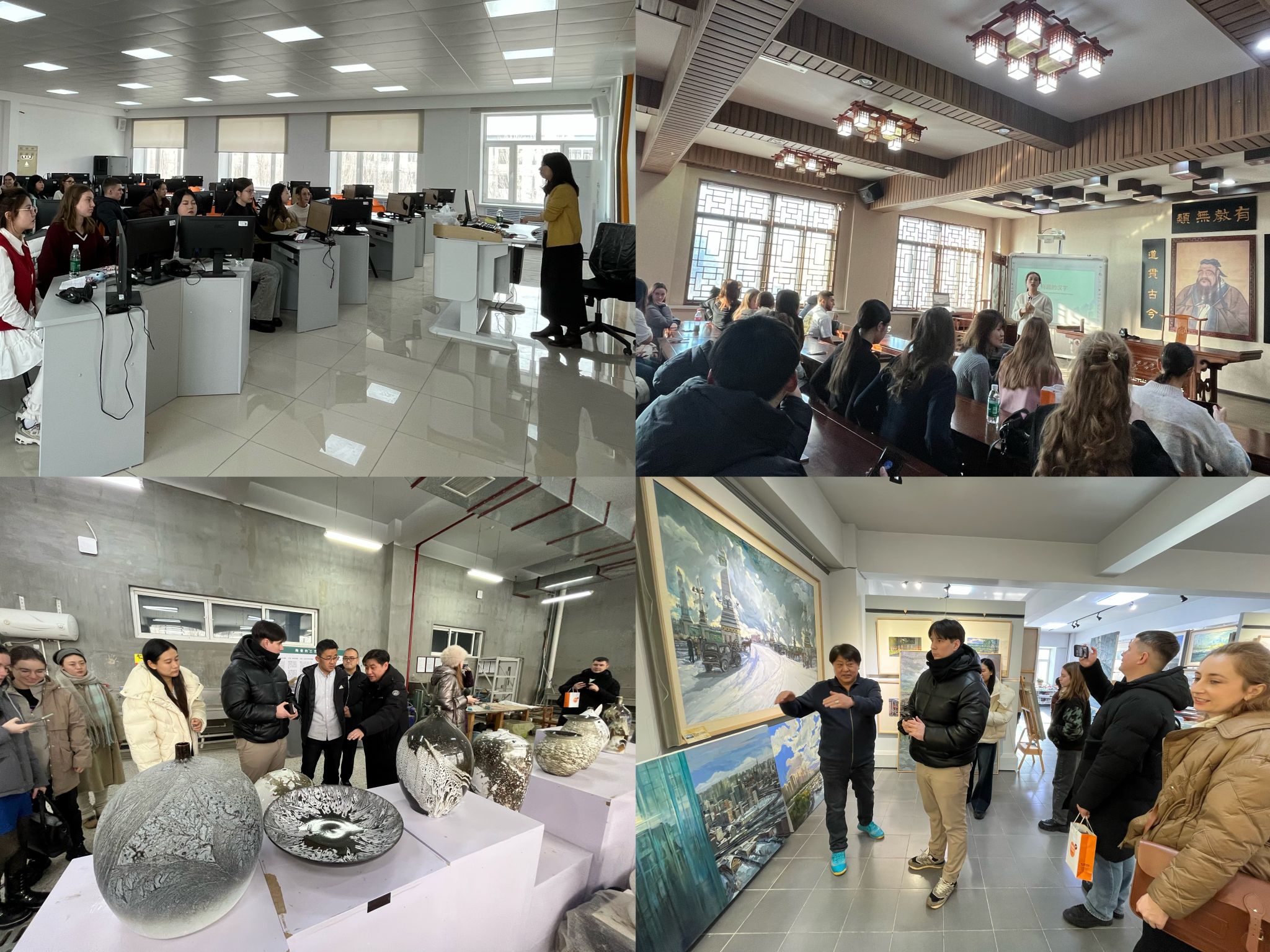 访问期间,俄罗斯师生研学团参加了哈尔滨学院外国语学院为俄罗斯学生开设的“龙江冰城冰雪魅力”主题体验课程,充分领略哈尔滨市独特的冰雪文化魅力。代表团参观了学校艺术实验中心,学习了解冰花瓷的制作工艺、文化内涵以及艺术价值,走进哈尔滨油画百年发展历程,感悟艺术成就。在中华传统文化体验环节,哈尔滨学院外国语学院教师还为代表团学生系统地讲解了汉字的起源与演变,俄罗斯师生亲身参与中国书法、民间剪纸和民族歌舞等三项传统文化活动课程,现场氛围热烈,互动积极踊跃。