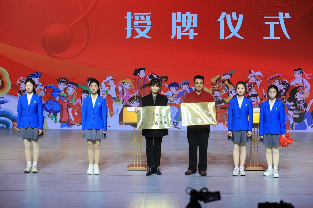 活动期间,中央民族歌舞团与哈尔滨音乐学院共同为“歌舞团调研采风基地”和“学院实习实践基地”揭牌,标志着双方合作进入常态化、机制化新阶段。本次演出不仅是一场艺术盛宴,更是一堂面向大中小学生的思政大课。哈尔滨新区第三学校师生代表、在哈兄弟院校及哈尔滨音乐学院师生共同观摩演出,在艺术熏陶中深化对民族团结的理解。