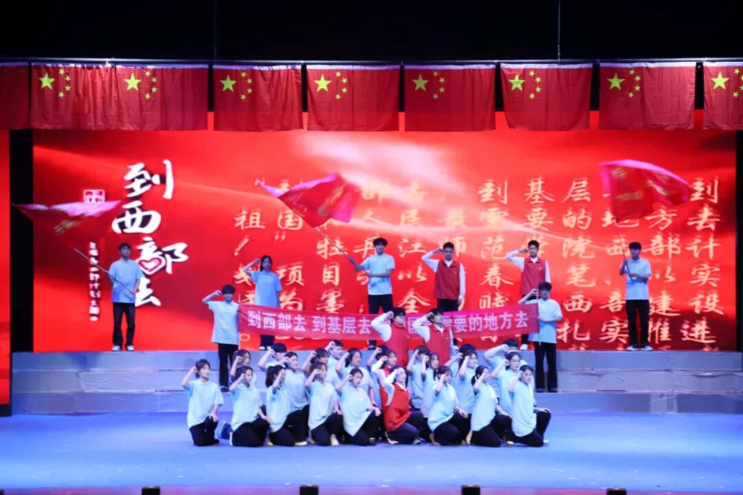 整场活动以文艺为载体,以信仰为内核,呈现了一堂别开生面的思政大课。演出在气势磅礴的合唱《保卫黄河》中拉开序幕,雄浑的歌声如黄河奔涌,唱响了穿越时空的青春强音。舞蹈《觉醒年代》以充满张力的肢体语言,再现了追求真理、燃烧理想的澎湃岁月。诗朗诵《青春向党挺膺担当》发出了新时代青年将个人理想融入国家伟业的铮铮誓言。蒙古族舞蹈《英雄赞歌》舞姿豪迈,诠释了草原儿女的英勇赤诚。情景歌舞《到西部去》深情讲述了学子投身西部建设的奉献故事,4名2025届西部计划志愿者分享服务西部的初心与成长,表达了扎根基层、奉献青春的坚定信念。原创音乐剧《热热的山 热热的水》将气氛推向高潮,生动再现了东北抗联浴血奋战的壮丽篇章。