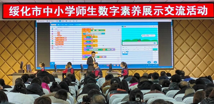 活动围绕“以展示促提升、以交流促成长”核心主题,通过课程展示、经验分享、专题讲座等多种形式,系统呈现了绥化市在推进师生数字素养提升方面的阶段性成果与创新实践。来自兰西县崇文实验学校、绥化市第二中学、兰西县第四中学的教师代表分别呈现了4节人工智能教育社团展示课,内容涵盖编程思维、智能硬件应用、项目式学习等方面,展现了数字化教学与学生创新素养培育的有机融合。